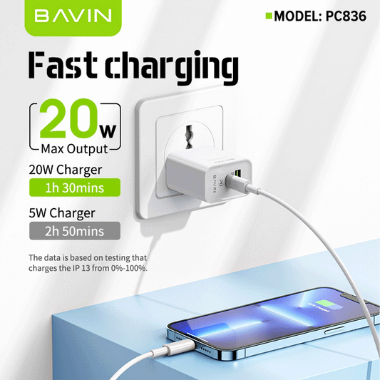 Bavin PC836 20W PD + Qualcomm3.0 Fast Charging Dual Port Adaptor