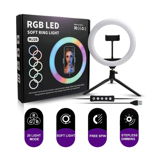 RGB LED Ring Light MJ33 33cm 13-inch with Phone Clip and 7ft stand